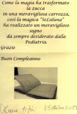 Selaluna ha donato alla dottoressa un libro "Mamma
